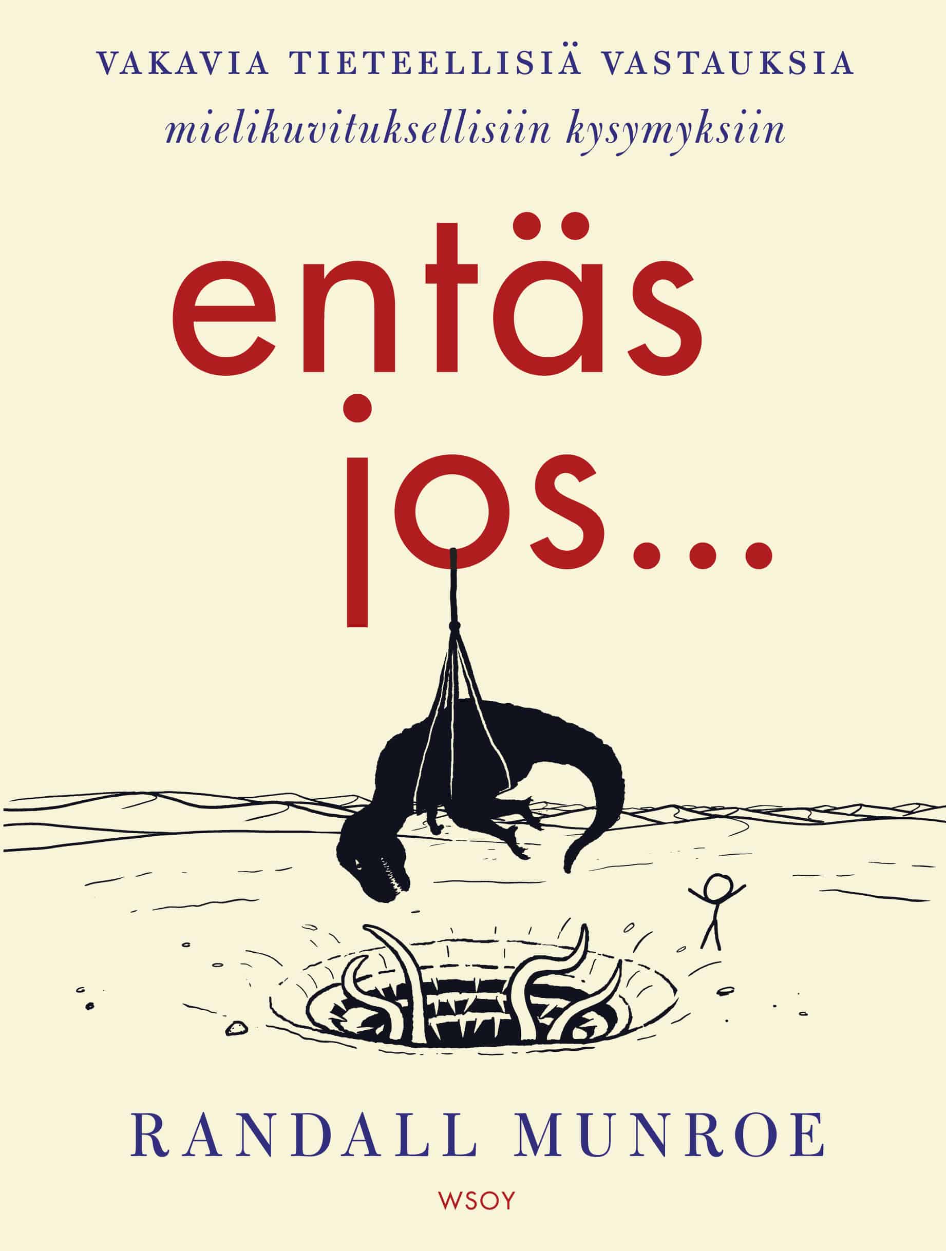 Entäs jos… -kirjaan on koottu parhaita paloja vakavista tieteellisistä vastauksista mielikuvituksellisiin kysymyksiin. Munroe osaa kirjoittaa niin, että maallikkokin ymmärtää fysiikan lakien selityksistä ja nauraa vedet silmissä. Munroen tikku-ukot tuovat vielä kaikessa yksinkertaisuudessaan lisää huumoria.
