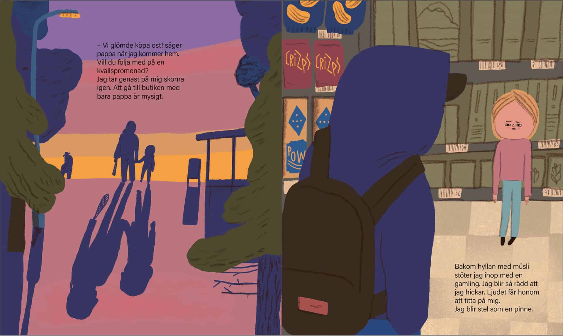 Kokeneet kuvakirjataiturit Malin Klingenberg ja Maria Sann kuvaavat hienosti lasten kokemuspiiriä. Puiston toista rengaskeinua ei voi käyttää, koska vanhukset ovat piilottaneet sinne veitsen. Näin on Ebba kuullut ja tottahan se silloin on. Tällaisia uskomuksia ja pelkoja oli varmasti itse kullakin.